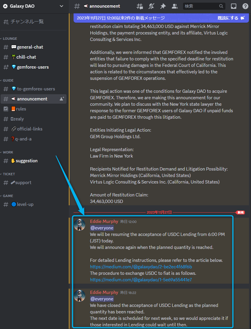 Galaxy DAOはGEMFOREXユーザーを無視したり、過小評価したりすることはありません。今後ともGalaxy DAOをよろしくお願いいたします。