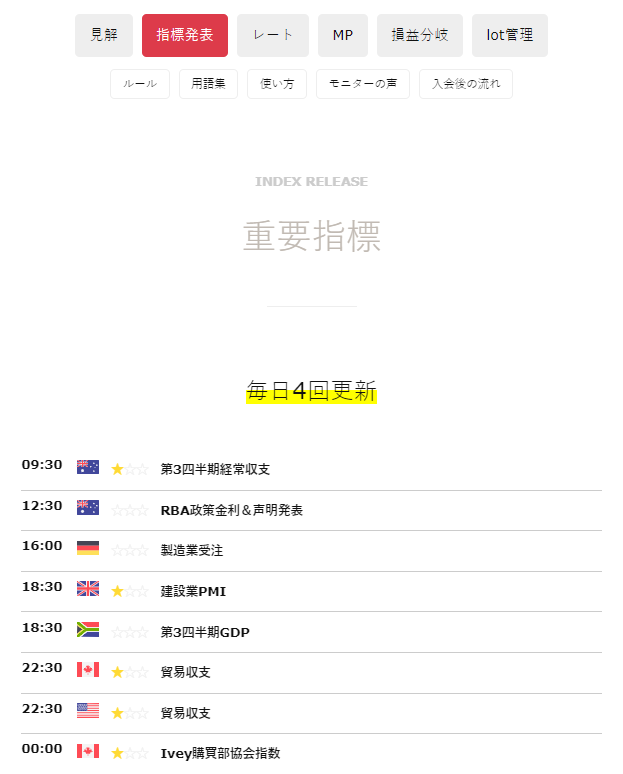 トレーディングチームが利用する指標関連の確認は以下のサイトとなります。